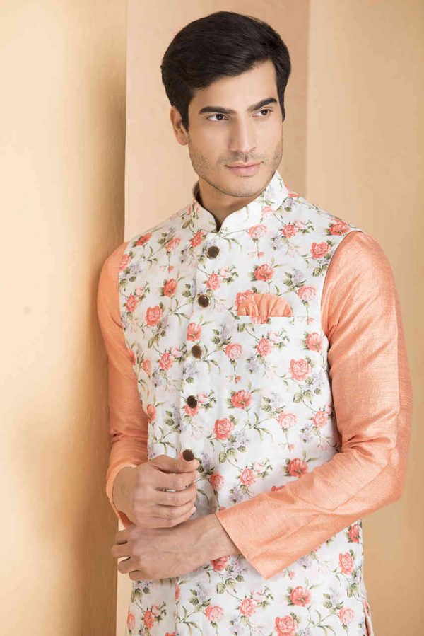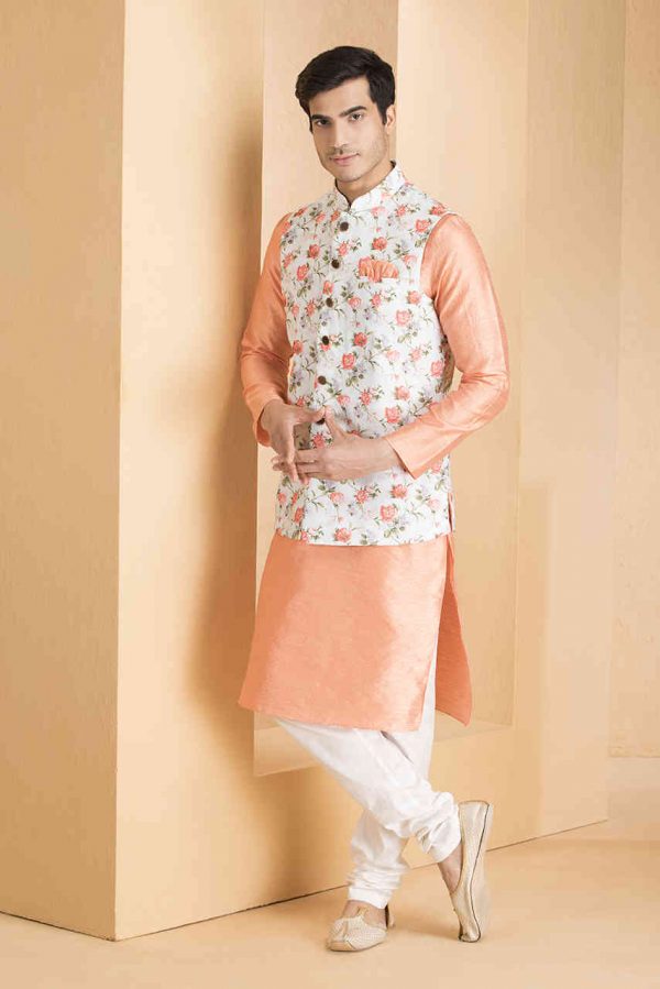 Material, colour and work – Made with art silk material, the coral peach kurta is a perfect choice if you are searching for something subtle and delightful. This solid-colored kurta is perfect for casual, wedding or festive occasions and is a perfect combination of style and comfort.