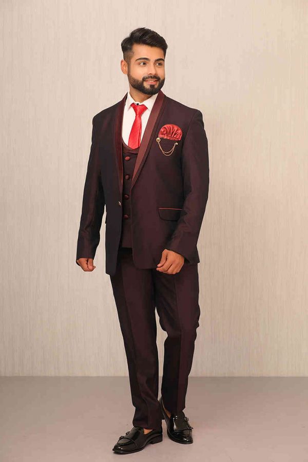 - The Product Price is inclusive of: 1 Suit ,1 Shirt , 1 Tie,1 Waist Coat , 1 Brooch And 1 Wine Trouser